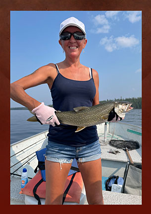 Lake Trout: Buck tail jigs/big 1 1/2 oz. or 2 oz. white or chartreuse, sometimes any colour works; Dr. spoons/4" rubber minnows/big blue & white with big jig head; 5 of Diamonds; Sutton Spoons; Shad Raps/ big sized silver