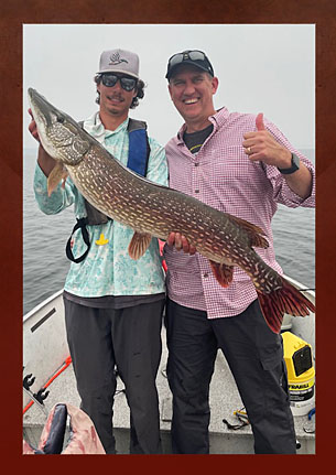 Northern Pike: Jig with a Slug-Go, various 4 inch spoons or larger in various colours (silver and gold, tiger spoons) weedless 5 of Diamonds, large crank baits in green, gold, orange and red. Jig heads 1/4 to 2oz., Mepps Spinner #5, Rapala Husky Jerks 3" and 4 1/2", Kast Master spoon, daredevils in red/white, Johnson's Silver Minnows, Shad Raps, and Mistie Shad.