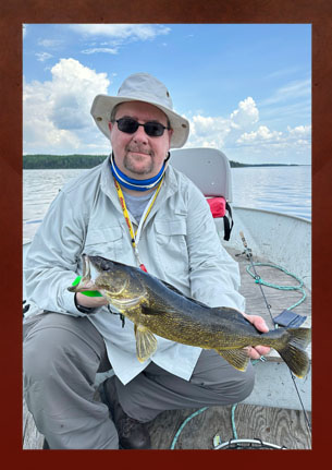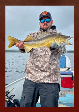 Walleyes: various colours of jigs 1/4 to 2oz., Mepps Spinner #5, 2-3" Power Tail power bait, Shad Raps, Mistie Shad, Little Joe Spinners, Twister Tails, 2-3" Crank Baits in orange, fire tiger and gold.